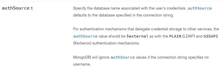 发现还是一样报错,只能翻官方的文档了,确实找到了authSource的说明文档: